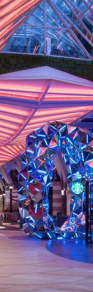 Central Park Neighbourhood: Wander through a living park at sea, where winding pathways, upscale boutiques, and artisanal cafes are tucked amongst thousands of real trees, offering a serene outdoor escape under the stars.